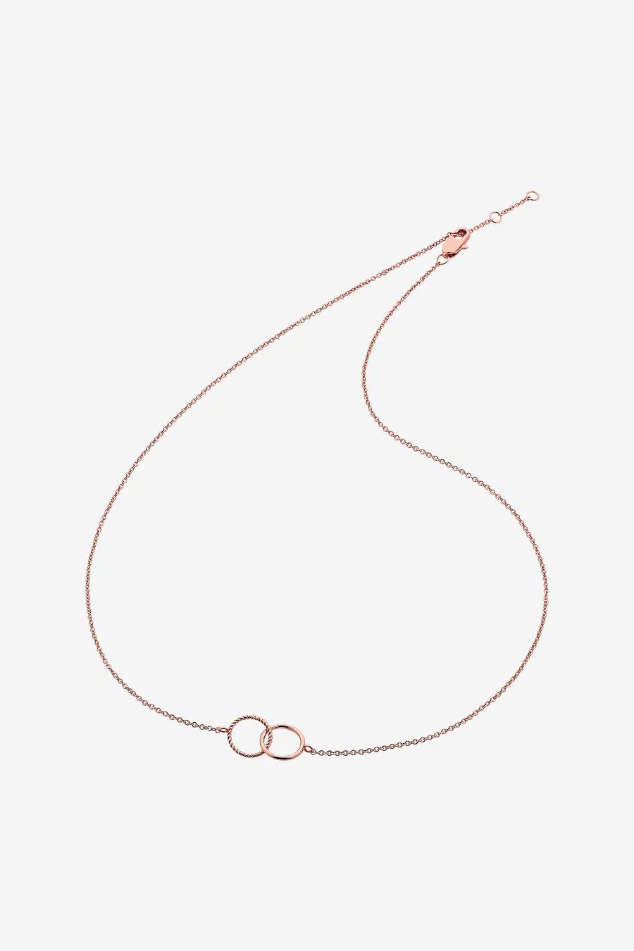 A delicate chain necklace featuring interlocked circles one plain one textured. Perfect way to gift your bestie, loved one or yourself.