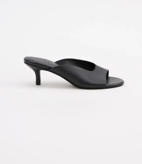 The Elodie heeled mule is crafted from smooth nappa leather with a subtle sheen, giving it a refined yet modern look. Designed with an open toe and a delicate 5.5 cm kitten heel, it offers understated elegance and all-day comfort. The slip-on silhouette features a low, rounded top line for a flattering fit, while the leather upper and inner ensure a soft, luxurious feel with every step.