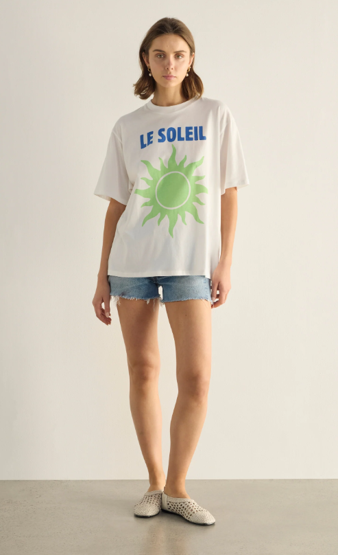 The Le Soleil Boyfriend Tee channels laid-back cool with a touch of French romance — le soleil meaning “the sun.” Designed in a relaxed, intentionally oversized boyfriend fit, it features a classic crew neckline and is crafted from 100% organic cotton in a dry-jersey with a soft hand feel. Easy, effortless, and made for sun-soaked days.