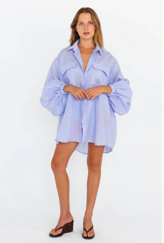 100% ramie fabric, long sleeve button up shirt. Sheer fabric. Beautiful oversized relaxed fit with balloon sleeves. Scoop long back.