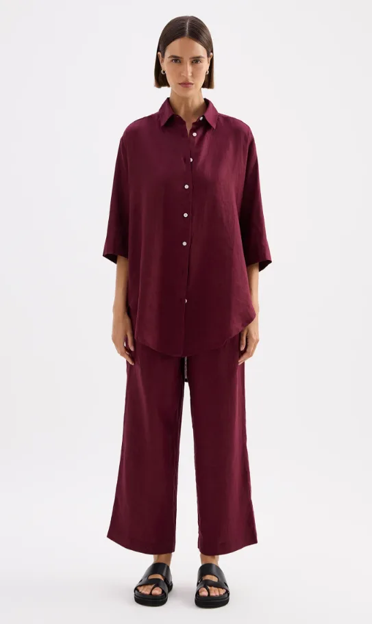 The Lounge Linen Shirt is made in a premium 100% organic French linen which has been washed down for a soft and breathable hand feel. The silhouette is a classic shape, with a clean and casual fit. Features include a wide collared neckline, button front opening and wide elbow length sleeves. This shirt also includes the Nude Lucy branded label. Pair with a Nude Lounge Bottom in coordinating colours.