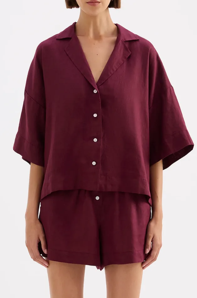 The Lounge Linen Shirt is made in a premium 100% organic French linen which has been washed down for a soft and breathable hand feel. The silhouette is a classic shape, with a clean and casual fit. Features include a wide collared neckline, button front opening and wide elbow length sleeves. This shirt also includes the Nude Lucy branded label. Pair with a Nude Lounge Bottom in coordinating colours.