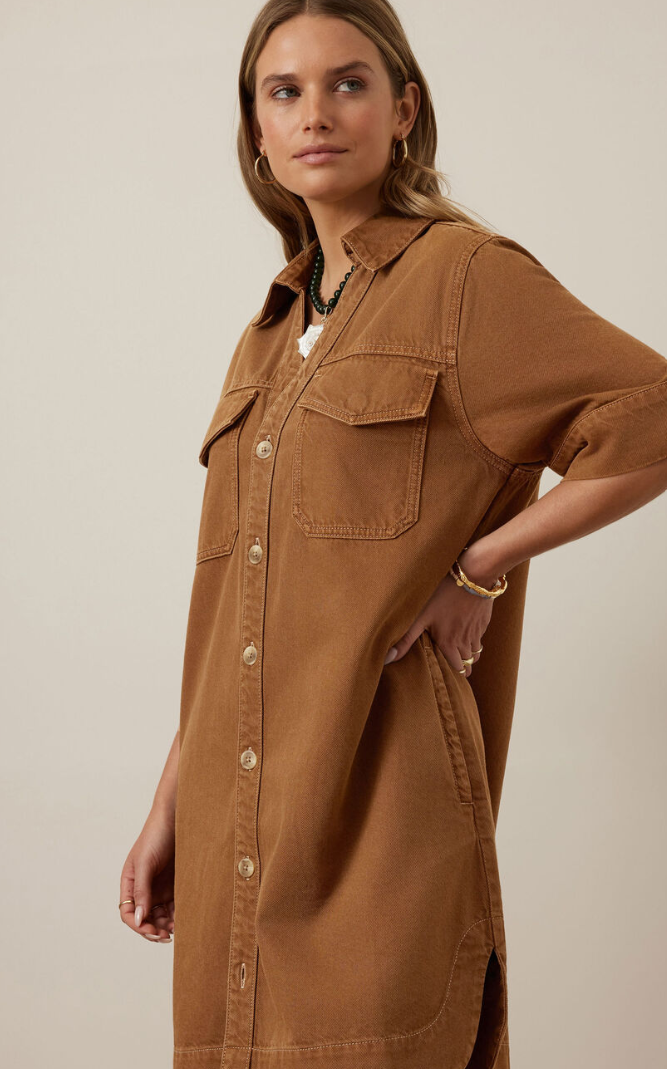 Your favourite Boxy Dress just got better. We’ve listened to your feedback and all of the things you love about our original dress remain but with a more true to size fit. It’s still a looser, relaxed fit so we do recommend to size down if you prefer a slimmer fit. Crafted with a cotton and lyocell blend for soft hand-feel, this mini length dress features a shaped hem with side splits, updated with hidden snap closures on the front pockets and a front yoke seam.