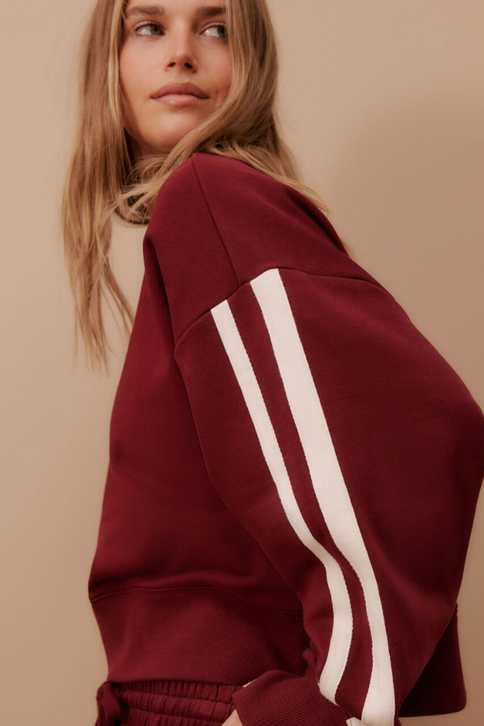 Sporty Slouchy Crew Burgandy Side Stripe
