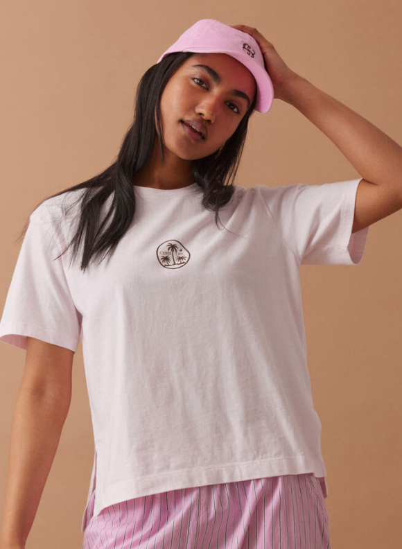Stevie Slouchy Tee Sunfaded PinkIsland Print