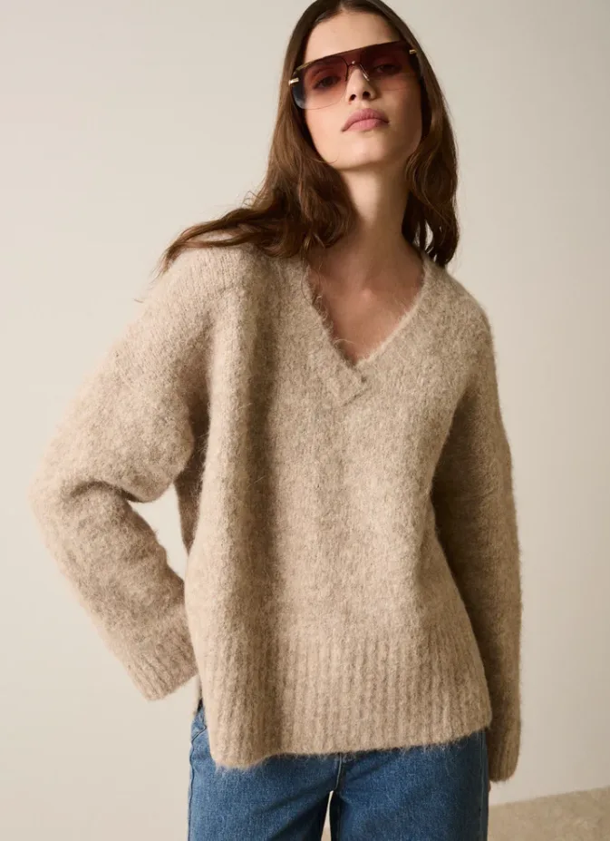 • Esmaee Whisper V Neck Sweater• Lux alpaca blend yarn• V neckline• Long sleeve• Oversized relaxed• High thigh lengthStyle No: 99.298.671Content: 59% Alpaca 25% Acrylic 15% Nylon 1% ElastaneModel height: 175cm / 5'9in | Model wears Size XS